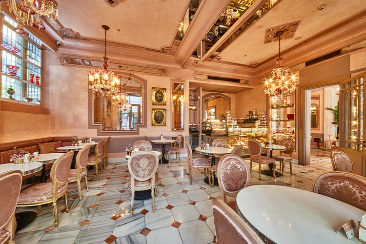 130 yıllık tarihiyle misafirlerini ufak bir yolculuğa çıkaran, Beyoğlu’nun kalbi Pera Palace Hotel’in tam kalbinde Patisserie de Pera… 2013 yılında, ‘dekorasyon kraliçesi’ olarak bilinen Anouska Hempel tarafından yeniden tasarlanan Patisserie de Pera’ya, -Lebon, Markiz, Nisuaz derken pek çok pastanenin güzel anılarda ve hikâyelerde kaldığı günümüzde- sıkı sıkıya sarılıyoruz. El yapımı çikolataları, özgün Fransız pastaları ve birbirinden özel lezzetleriyle köklü geçmişini ve değerlerini günümüzde de yaşatmaya devam eden Patisserie de Pera, tarihi içinde barındıran, pastel tonları, son derece şık sunumları, çekirdekleri yeni çekilmiş taptaze kahve kokusuyla misafirlerine eşsiz lezzetlerle dolu, masalsı bir atmosfer sunuyor.
